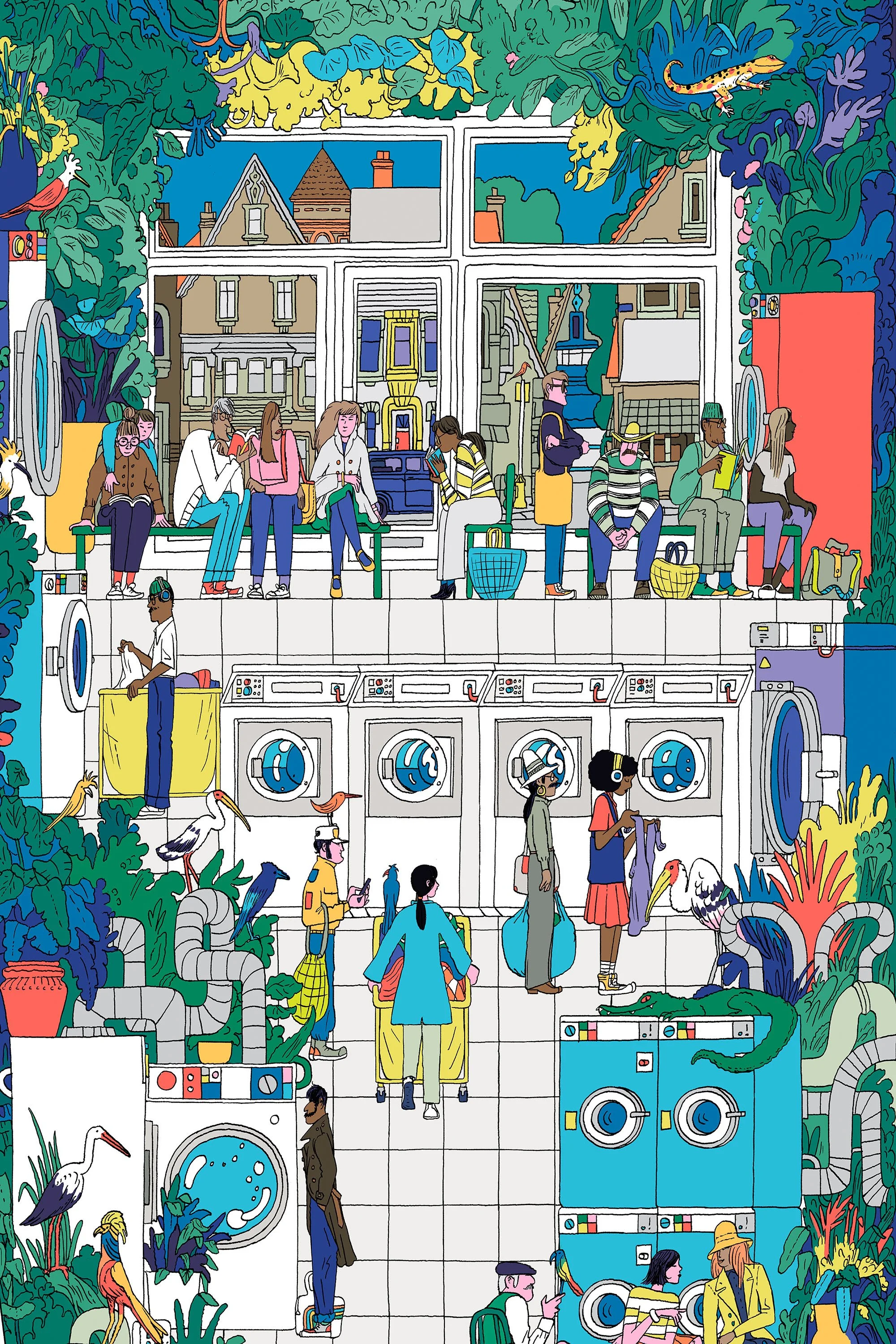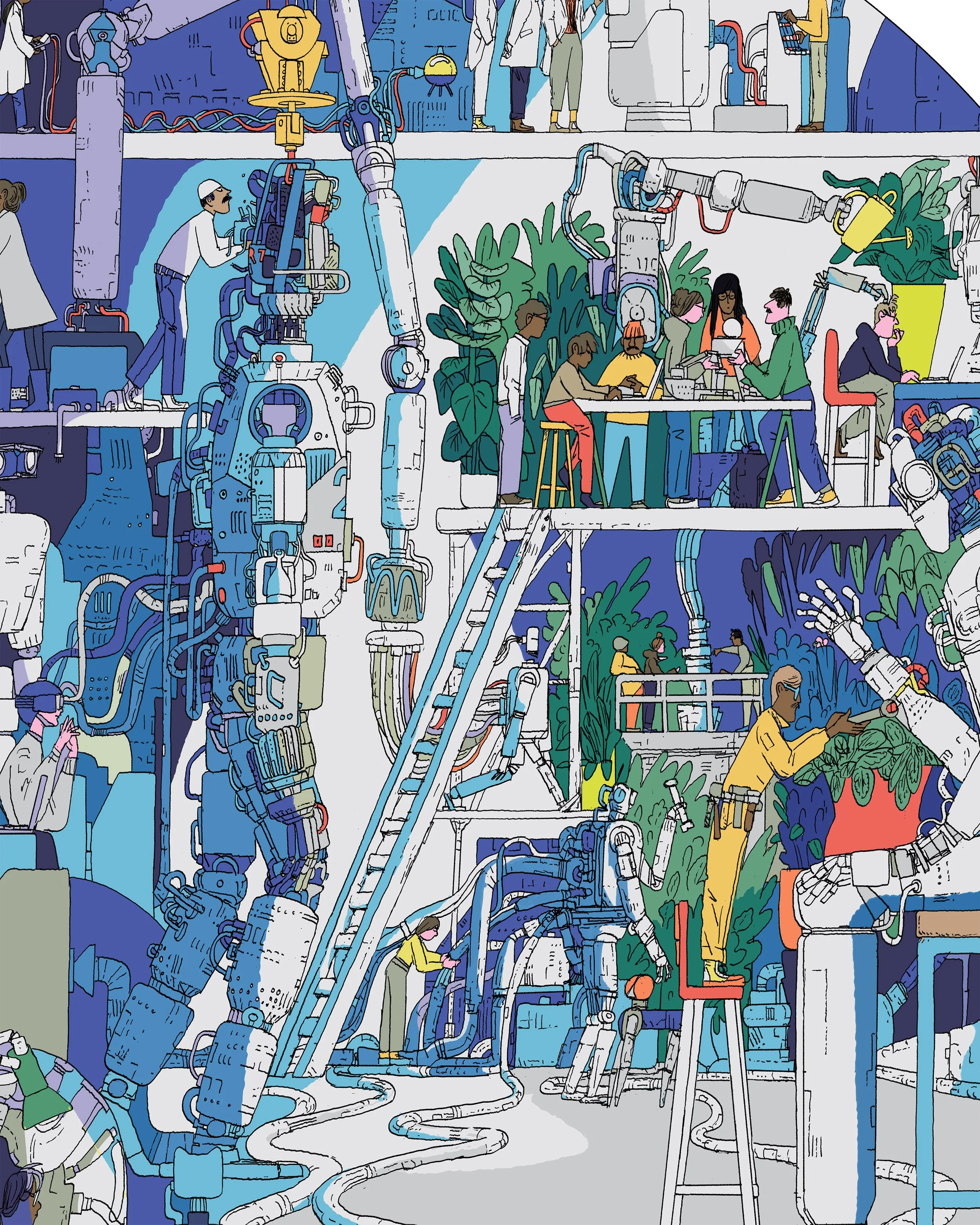 Intuit commissioned Celyn to design full height wall installations on the theme of fantastic spaces we would love to work and hang out in